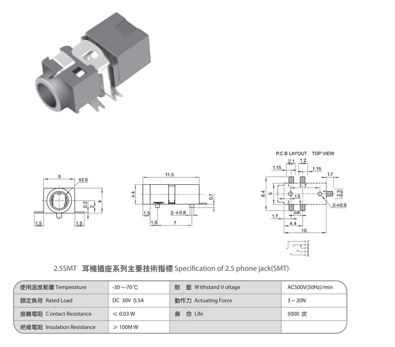 2.5 phone jack(SMT) PJ-218D