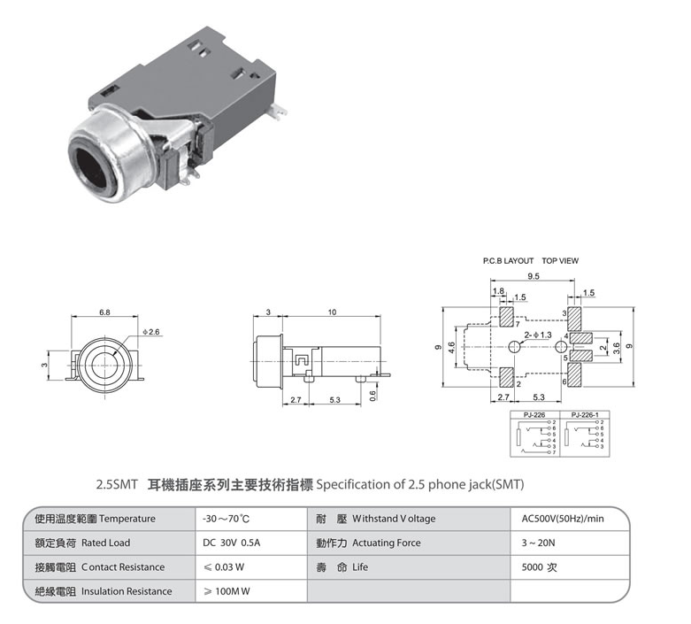 2.5 phone jack(SMT) PJ-226