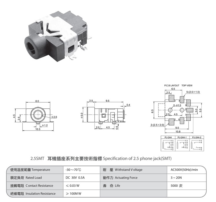 2.5 phone jack(SMT) PJ-244