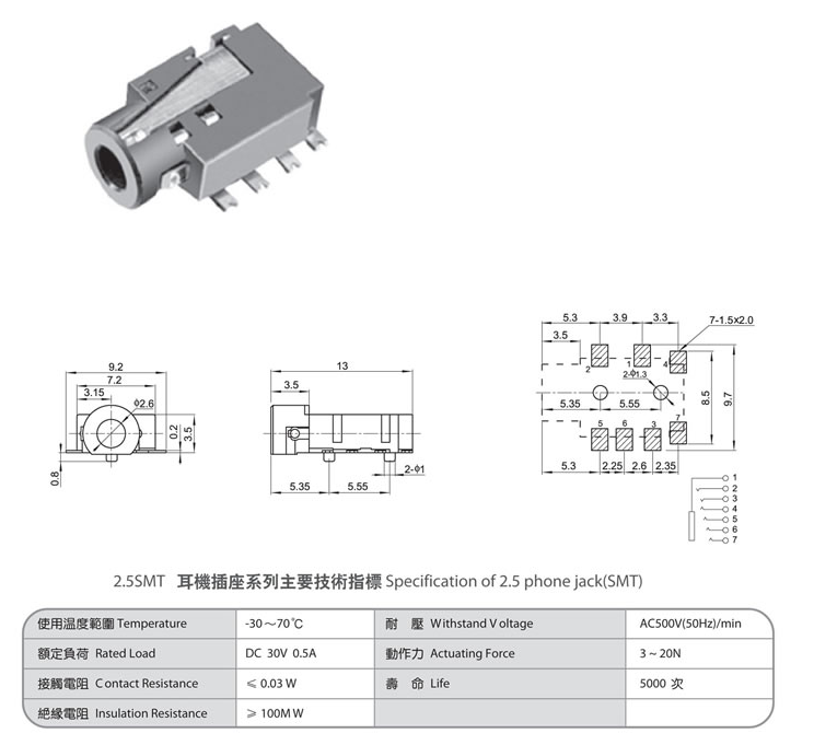 2.5 phone jack(SMT) PJ-256
