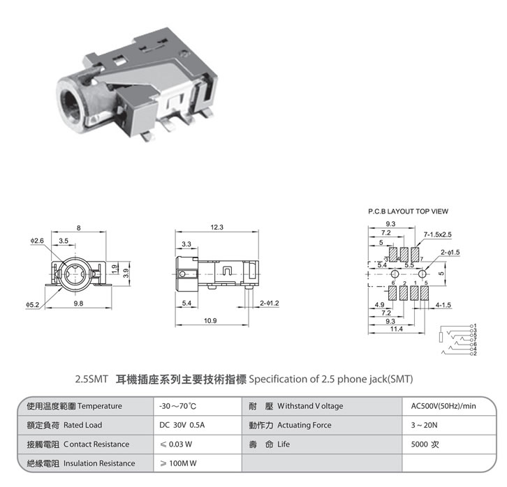 2.5 phone jack(SMT) PJ-257