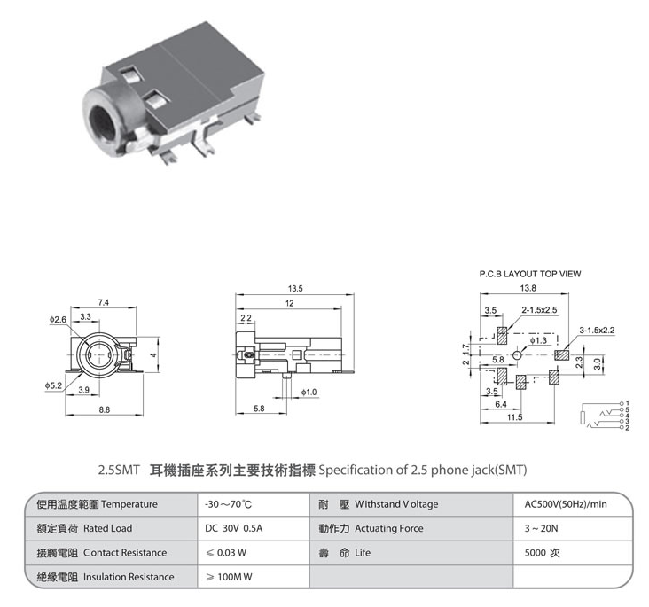 2.5 phone jack(SMT) PJ-260