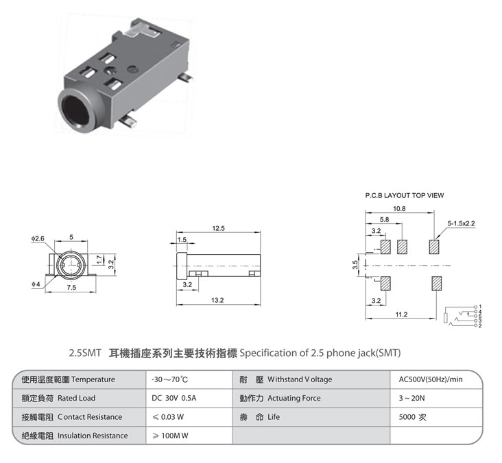 2.5 phone jack(SMT) PJ-262