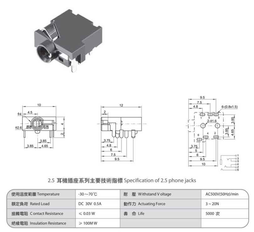 2.5 phone jack PJ-205C
