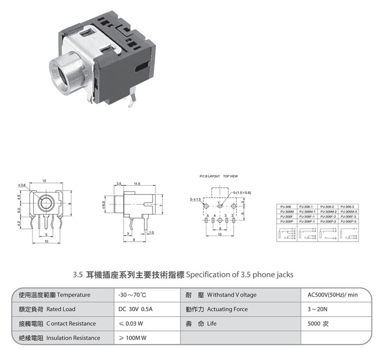 3.5 phone jack PJ-306