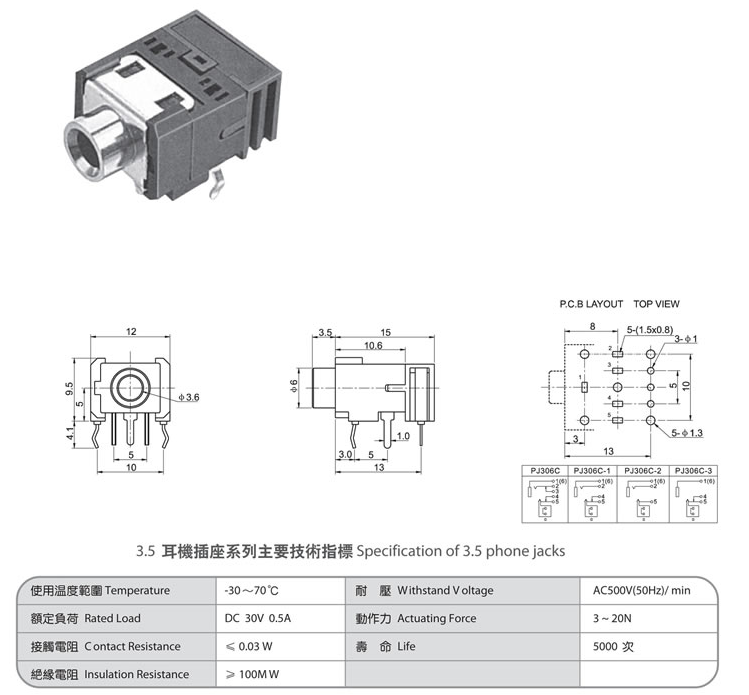 3.5 phone jack PJ-306C