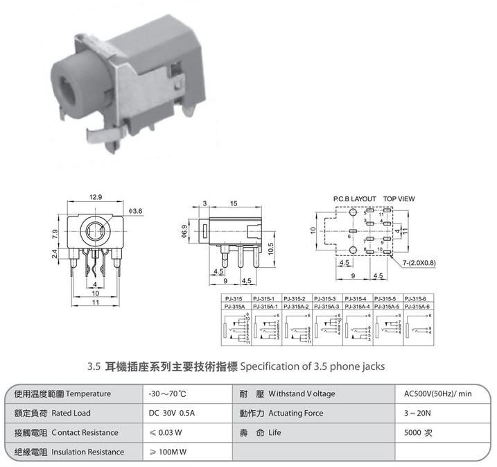 3.5 phone jack PJ-315