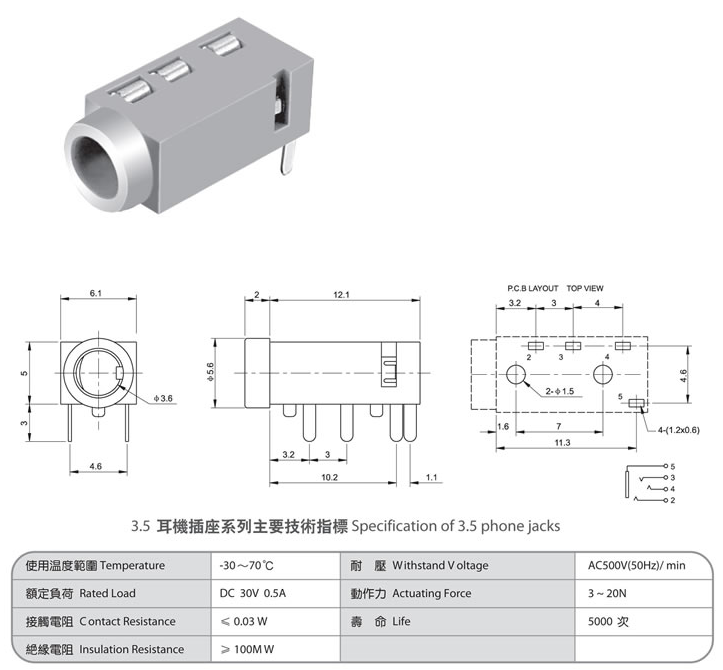 3.5 phone jack PJ-366