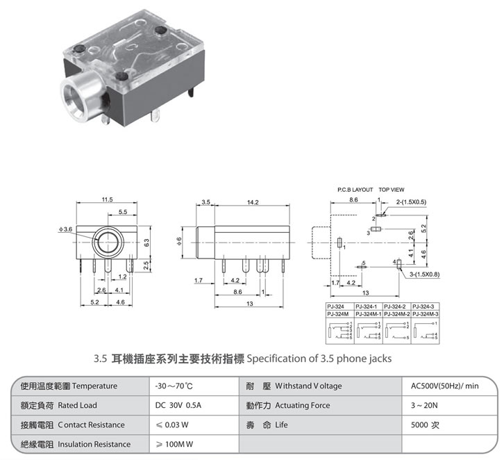 3.5 phone jack PJ-366