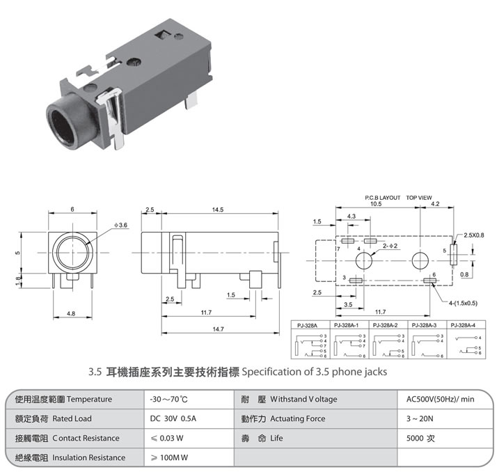 3.5 phone jack PJ-328A