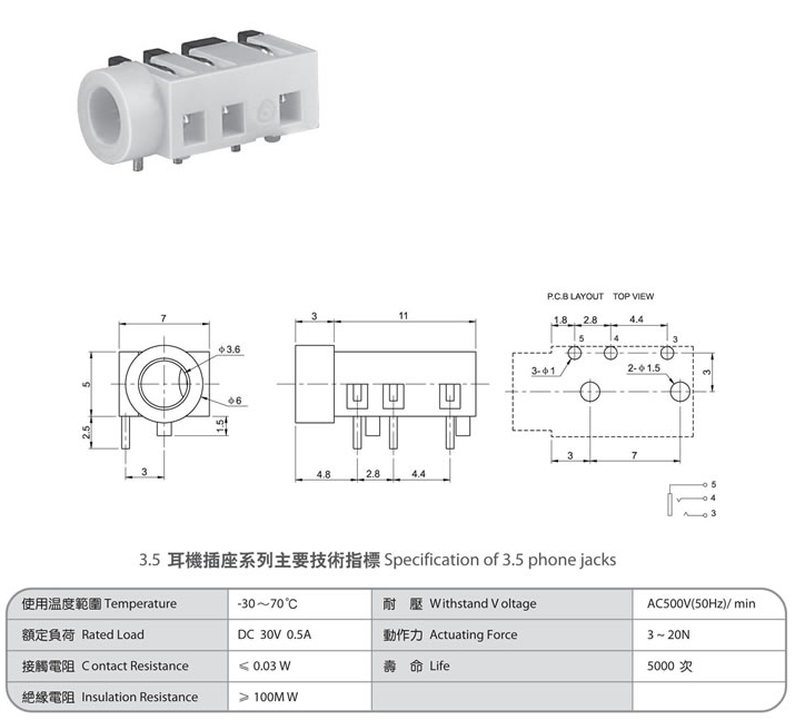 3.5 phone jack PJ-366