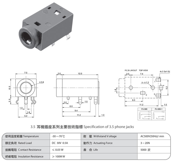 3.5 phone jack PJ-366